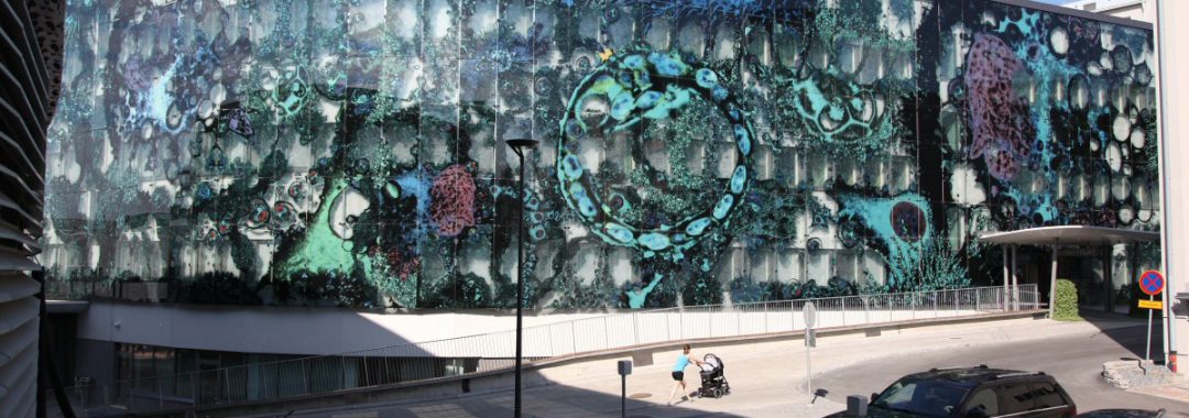 Kuopion yliopistollinen sairaala Kuopion Yliopistollinen sairaala Kaarisairaala 2015 Taiteilijat: Partanen & Lamusuo Oy Kumppani: Teräselementti Oy Lasimäärä: n. 1500 m2, 476 lasielementtiä